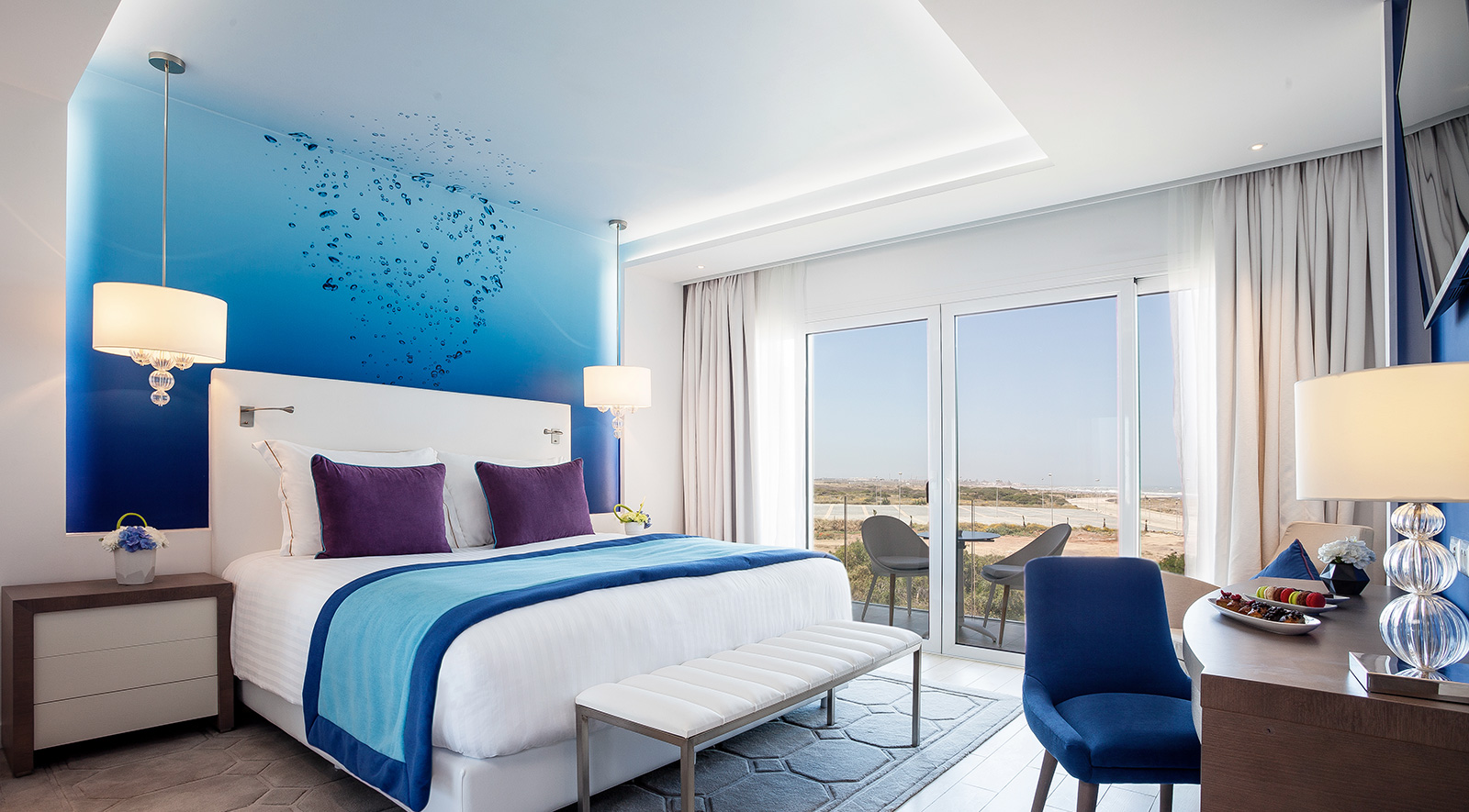 130 chambres et suites spacieuses (de 30 à 78 m²), avec des équipements modernes, alliant design contemporain et touches marocaines, vous garantissent un séjour des plus confortables. Toutes les chambres disposent d’un balcon ou d’une terrasse privée offrant une vue imprenable sur la mer, les jardins ou le golf et sont équipées de literie de qualité (lit king size), téléphone, TV, WiFi gratuit, minibar, machine à café, plateau de courtoisie avec thé/café, coffre-fort, sèche-cheveux, chauffage/climatisation.
