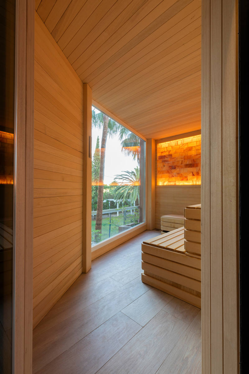 Piscine extérieure d’eau de mer non chauffée, piscine intérieure d’eau de mer chauffée avec jets sous-marins, jacuzzi et col de cygne, sauna au sel, très belle salle de fitness. Cours de stretching, relaxation, Yoga & Pilates.